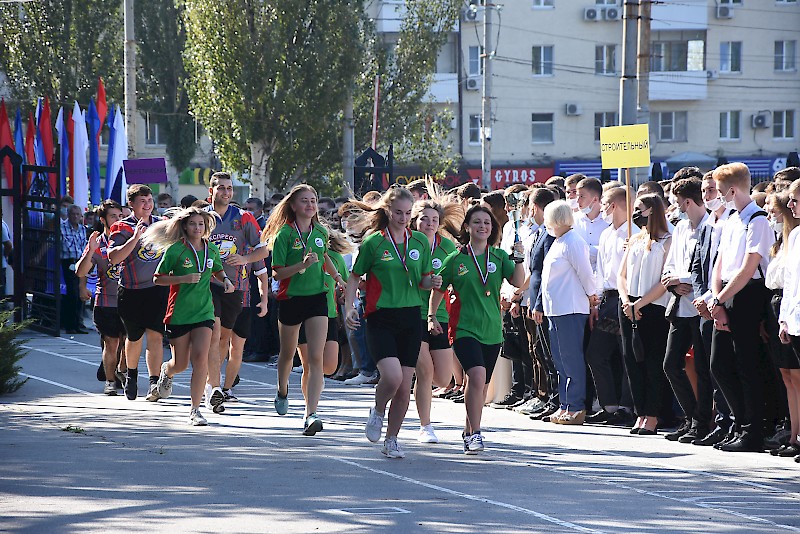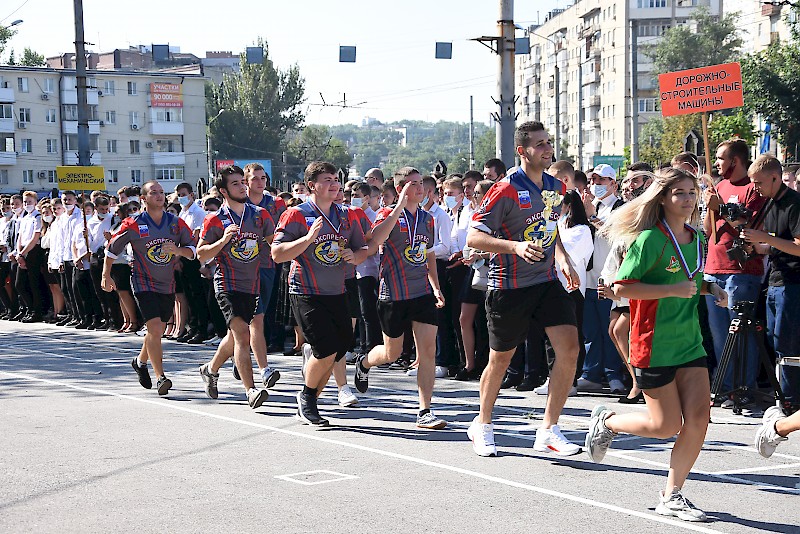 Первокурсников приветствовали бойцы студенческих отрядов, спортсмены университета и участники художественной самодеятельности знакомя участников праздника с достижениями летнего трудового семестра.