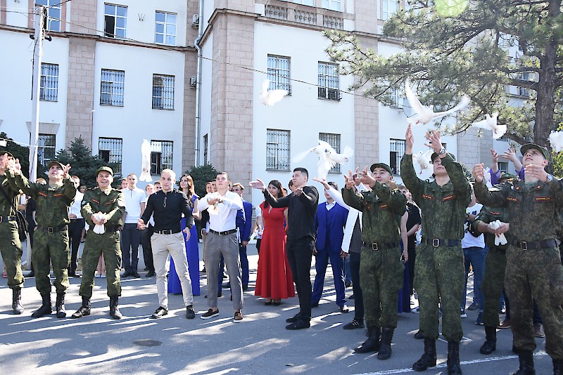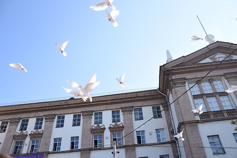 Закрытие Торжественной линейки, посвященной Дню знаний завершилось запуском голубей, как символа новых начинаний и свершений.