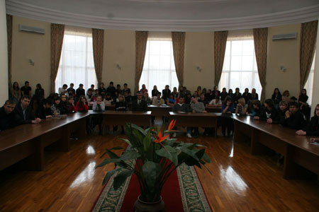 В преддверии встречи Управление воспитательной работы организовало экскурсию первокурсников университета по городу Ростову-на-Дону к памятникам, автором которых является Анатолий Скнарин. Ребята испытали большое удовольствие, сфотографировались на память и хотели узнать о скульпторе как можно больше. Анатолий Андреевич рассказал о своем творчестве, о планах и новых работах, ответил на все вопросы студентов и лицеистов. Участники гостиной увидели слайды с работами скульптора, прозвучал музыкальный подарок – прекрасная песня о Ростове в исполнении студентки гуманитарного факультета Елизаветы Семеновой.