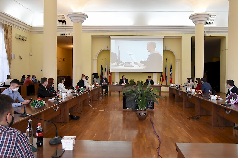 Встреча 2020 года «Современный вектор развития». Тема, которую задал ректор, очень актуальна на сегодняшний день. Разговор шел об университете будущего, каким он будет. Сегодня мы живем в мире информационных технологий, когда развито онлайн-обучение и встает вопрос о миссии вуза как центра образования и культуры. В контексте разговора студенты посмотрели видеоролик, о современном развитии электронно-информационной образовательной среды университета, изготовленный студенческим объединением «Скотч».