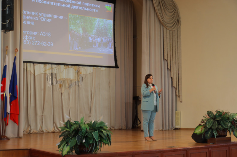 Первокурсникам была представлена обзорная презентация студенческих объединений, секций и кружков, в которых любой студент может реализовать себя в свободное от занятий время.