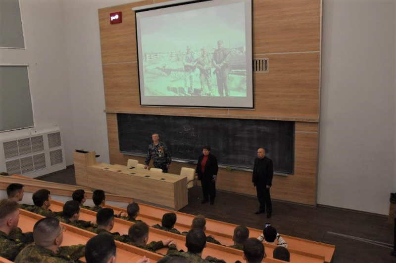 В преддверии празднования Дня Героев Отечества на встречу с студентами пришел ветеран боевых действий, полный кавалер ордена Мужества, заместитель председателя Совета Всероссийской ассоциации ветеранов боевых действий органов внутренних дел и внутренних войск РФ, полковник Иванов М.Б.