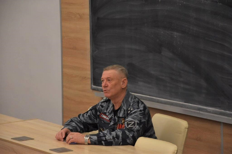 Много теплых слов о полковнике М.Б. Иванове, представляя его студентам, сказал декан факультета «Экономика, управление и право», председатель Совета ветеранов вуза А.В. Федоров. Во время своей службы в органах внутренних дел, он неоднократно бывал в горячих точках и выполнял боевые задачи вместе с бойцами отряда под командованием М.Б. Иванова.