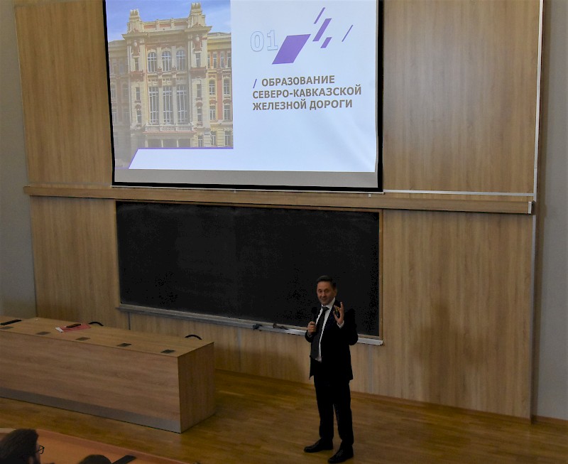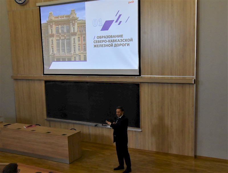 В ходе лекции студенты университета ознакомились с состоянием и перспективами развития Северо-Кавказской железной дороги в современных условиях, получили возможность задать вопросы о собственных перспективах работы в компании, а также развитии компании и отрасли в целом.