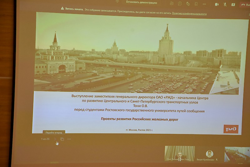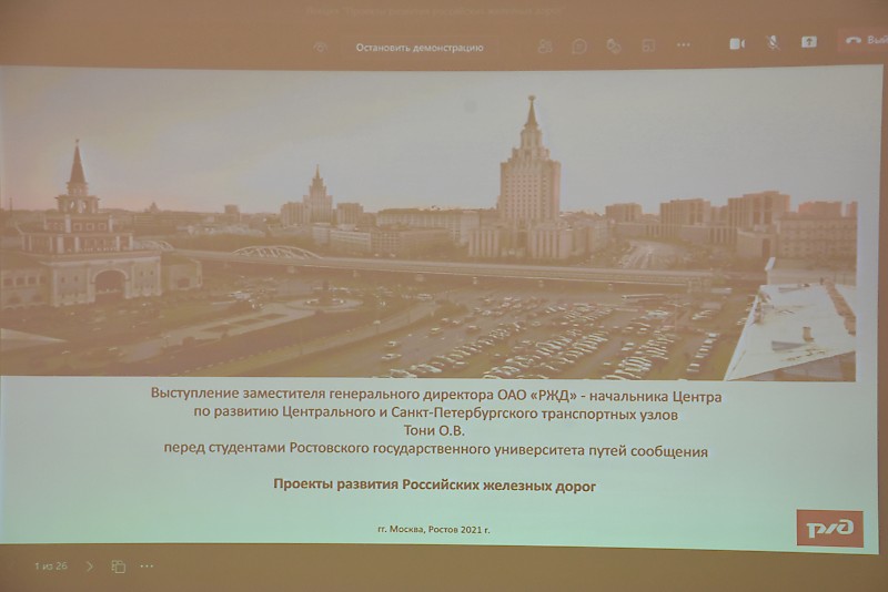 В рамках реализации Программы по взаимодействию ОАО «РЖД» с университетскими комплексами железнодорожного транспорта, 1 апреля в университете в дистанционном формате состоялось проведение лекции для студентов 3 и 4 курсов по теме «Проекты развития Российских железных дорог».