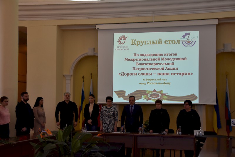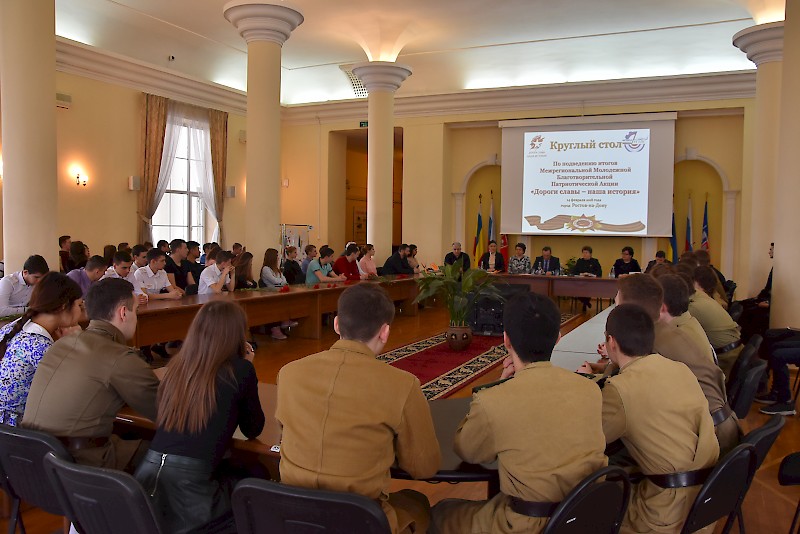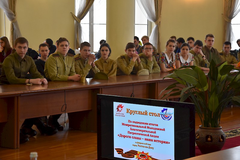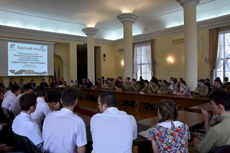 В заседании круглого стола приняли участие: руководство вуза, депутаты Ростовской-на-Дону городской Думы, представители Комитета по молодежной политике Ростовской области, Администрации города Ростова-на-Дону, Администрации Октябрьского района города Ростова-на-Дону, Ростовского регионального благотворительного фонда "Будущее Отечества" им. В.П. Поляничко, Государственного автономного учреждения Ростовской области "Центр патриотического воспитания молодежи Ростовской области", интернет общественности, Института водного транспорта имени Г. Я. Седова - филиала ФГБОУ ВО «Государственный морской университет имени адмирала Ф.Ф. Ушакова, городского отделение Ростовского регионального отделения Всероссийской общественной организации ветеранов войны, труда, вооруженных сил и правоохранительных органов, участники Молодежной Благотворительной Патриотической Акции «Дороги славы – наша история», студенты вуза, техникума, лицея, преподаватели.