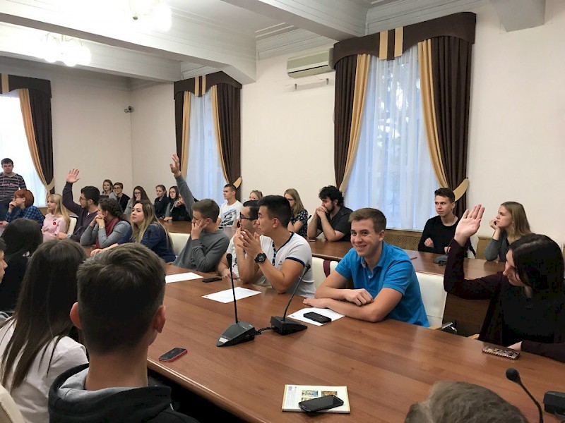 С активистами профсоюзной организации в режиме открытого диалога пообщались студенты-первокурсники. С работой студенческого профкома первокурсников познакомили ранее, так что акцент этой встречи был сделан на развитии студенческого самоуправления. Первокурсники узнали о мероприятиях, проводимых в университете, о том как найти в студенческой жизни себя, а также почерпнули опыта у старших курсов.
