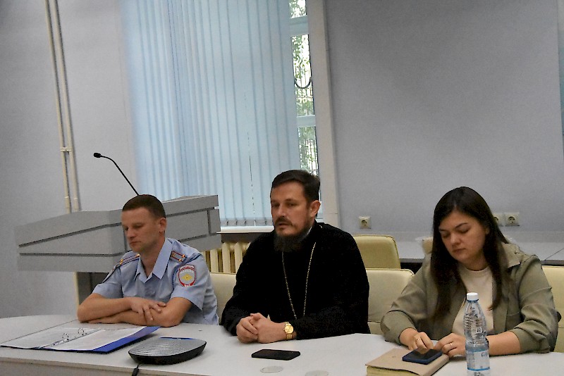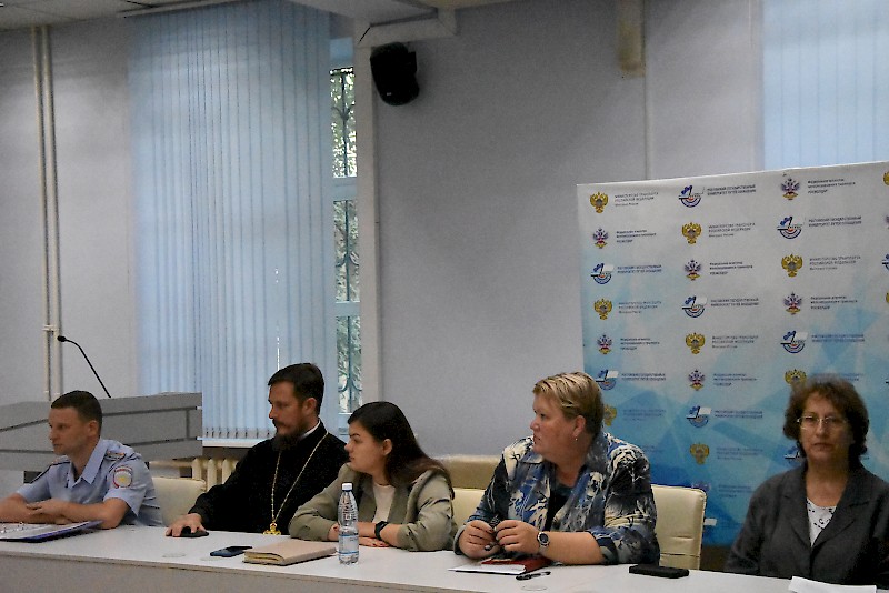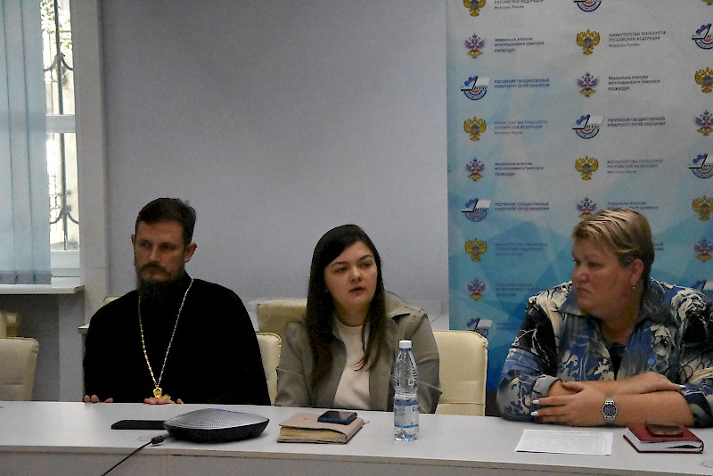 Участников круглого стола приветствовали: проректор по воспитательной работе и социальному развитию Шепилова Елена Григорьевна; заместитель начальника полиции (по оперативной работе) Управления на транспорте МВД России по Северо-Кавказскому федеральному округу полковник полиции Роменский Роман Юрьевич.