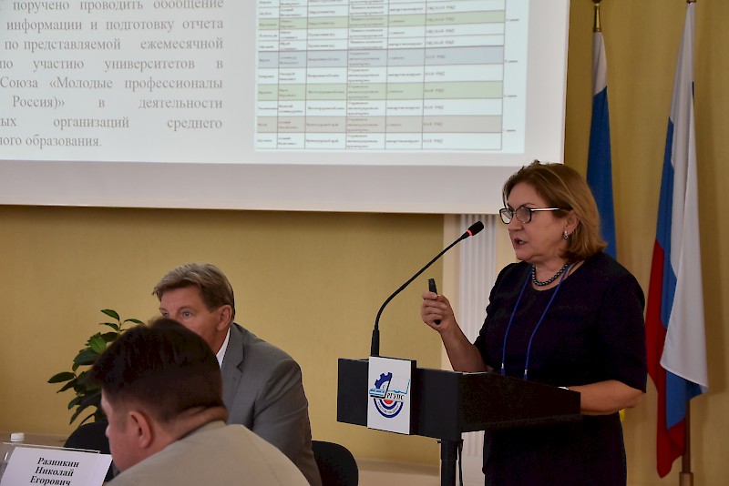 Каплюк Максим Алексеевич проректор по внешним связям и производственной практике РГУПС, Гаранин Максим Алексеевич проректор СамГУПС по учебной работе, Романов Александр Иванович начальник управления территориальных подразделений УрГУПС, Селиванов Евгений Иванович директор Тайгинского института железнодорожного транспорта – филиал ОмГУПС, Постников Павел Михайлович начальник УМУ СГУПС, Черных Наталья Геннадьевна руководитель организационно-методического центра СПО ИрГУПС, Гафиатулина Елена Саугановна проректор по учебной работе ДвГУПС, Сорокин Владимир Илларионович начальник УМО СПО образовательной организации ПГУПС выступили с докладами о перспективах развития структурных подразделений среднего профессионального образования в своих университетских комплексах, обозначили проблемы и пути их решения. Козлова Людмила Сергеевна директор медицинского колледжа железнодорожного транспорта – филиала ФГБОУ ВО ИрГУПС выступила с докладом «Перспективы развития медицинских структурных подразделений среднего профессионального образования Росжелдора. Проблемы и пути решения». Разинкин Николай Егорович директор Института прикладных технологий Российского университета транспорта, президент НО АСКИТТ: «Роль и место АСКИТТ в развитии СПО на транспорте».