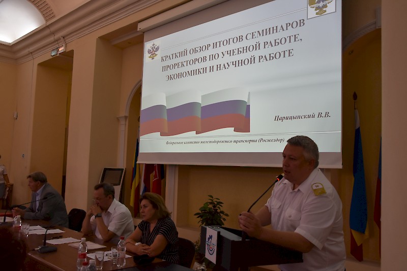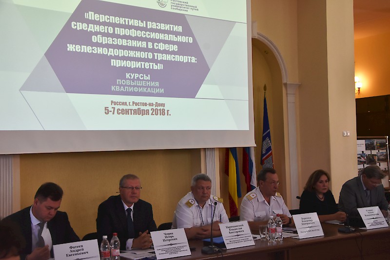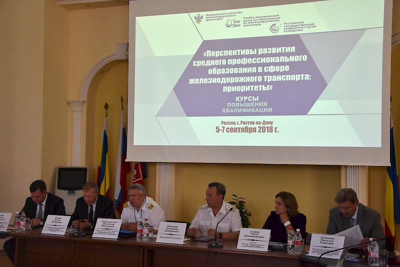Федеральное агентство железнодорожного транспорта, Федеральное государственное бюджетное учреждение дополнительного профессионального образования «Учебно-методический центр по образованию на железнодорожном транспорте» совместно с ФГБОУ ВО «Ростовский университет путей сообщения» 5-7 сентября 2018г провели семинар-совещание в рамках курсов повышения квалификации руководителей структурных подразделений СПО государственных университетов путей сообщения на тему: «Перспективы развития среднего профессионального образования в сфере железнодорожного транспорта: приоритеты».