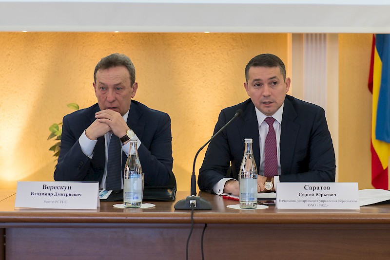В работе совещания приняли участие: Царицынский Владислав Викторович- начальник отдела учебных заведений Росжелдор , Саратов Сергей Юрьевич - начальник департамента управления персоналом (ЦКАДР) ОАО «РЖД», Збарский Александр Михайлович - заместитель начальника департамента управления персоналом (ЦКАДР) ОАО «РЖД», Бочков Валерий Владимирович - и.о. заместителя начальника СКЖД- филиала ОАО «РЖД» по кадрам и социальным вопросам, Верескун Владимир Дмитриевич - ректор РГУПС, Челохьян Александр Вартанович - первый проректор РГУПС, Виноградов Валентин Васильевич - первый проректор РУТ (МИИТ), Апатцев Владимир Иванович - директор РОАТ, Блажко Людмила Сергеевна - первый проректор ПГУПС, Комякова Татьяна Владимировна - проректор по учебной работе ОмГУПС, Куценко Сергей Михайлович - проректор по учебной работе ИрГУПС, Булатов Андрей Александрович - проректор по учебной работе СамГУПС, Новоселов Алексей Анатольевич- проректор по учебной работе СГУПС, Азаров Евгений Борисович - первый проректор УрГУПС, Сирина Нина Фридриховна - проректор по учебной работе и связям с производством УрГУПС, Маслова Ирина Александровна - начальник отдела по организации приема студентов УрГУПС, Гафиатулина Елена Саугановна - проректор по учебной работе ДВГУПС, Старых Ольга Владимировна - директор УМЦ ЖДТ по образованию на ж.д. транспорте, Кравченко Михаил Александрович - проректор по учебной работе РГУПС, Каплюк Максим Алексеевич - проректор во внешним связям и практике РГУПС, Охотников Александр Васильевич - заведующий кафедрой ТОУП РГУПС.