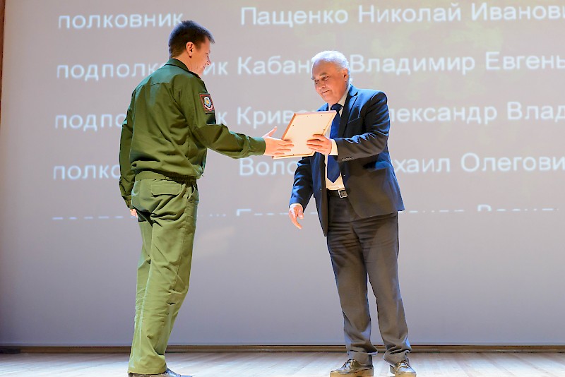 В зале Дворца культуры собрались ветераны Вооруженных Сил России, командование, научно-педагогический состав и студенты факультета военного обучения и Учебного военного центра. Первый проректор А.В. Челохьян поздравил ветеранов и студентов с праздником и вручил благодарности ректора РГУПС начальнику факультета военного обучения полковнику А.А. Хрусталёву и начальнику учебного военного центра полковнику Д.И. Коцило.