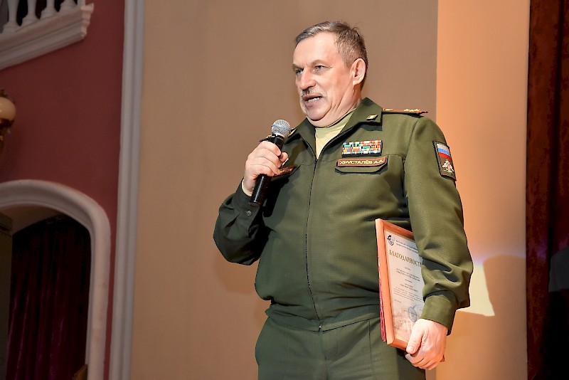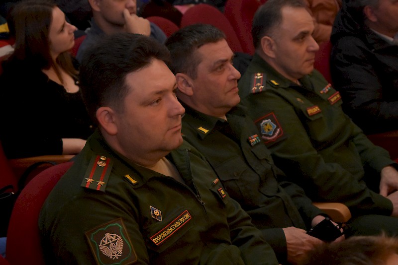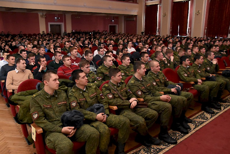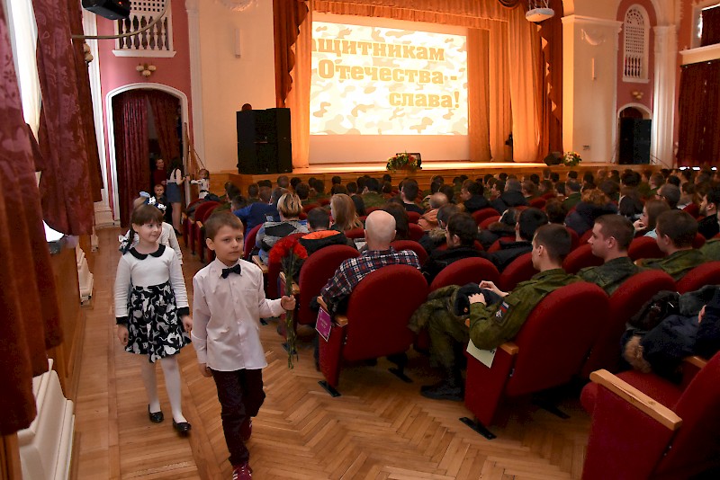 В зале Дворца культуры собрались ветераны Вооруженных Сил России, командование, научно-педагогический состав и студенты факультета военного обучения и Учебного военного центра. Проректор по воспитательной работе и социальному развитию Е.Г. Шепилова поздравила ветеранов и студентов с праздником и вручила благодарности ректора РГУПС начальнику факультета военного обучения полковнику А.А. Хрусталёву и начальнику учебного военного центра полковнику Д.И. Коцило. Также мужчин поздравила заведующая Выставочно-просветительским отделом «Шолохов-Центр» г.Ростова-на-Дону Н.С. Казинская.