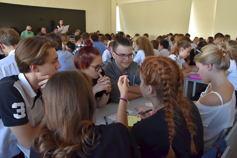 22 сентября более трехсот школьников, лицеистов, гимназистов, учеников колледжей и техникумов приняли участие в открытии Школьного Чемпионата Ростовской области по «Что? Где? Когда?» сезона 2018-2019 годов. РГУПС проводит Чемпионат во второй раз.