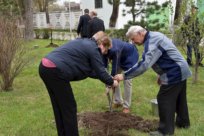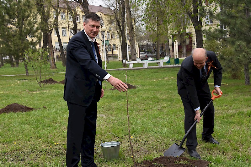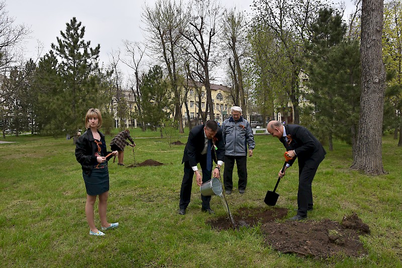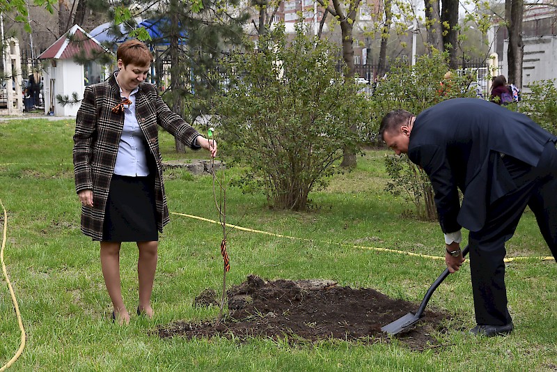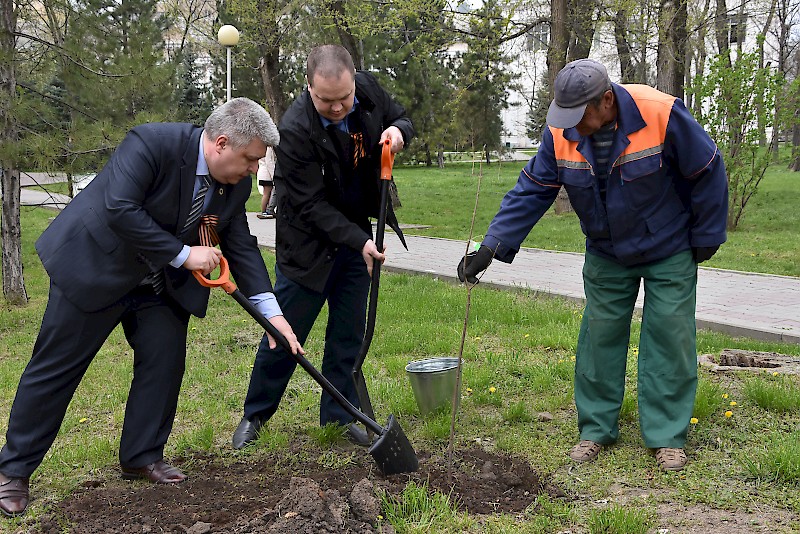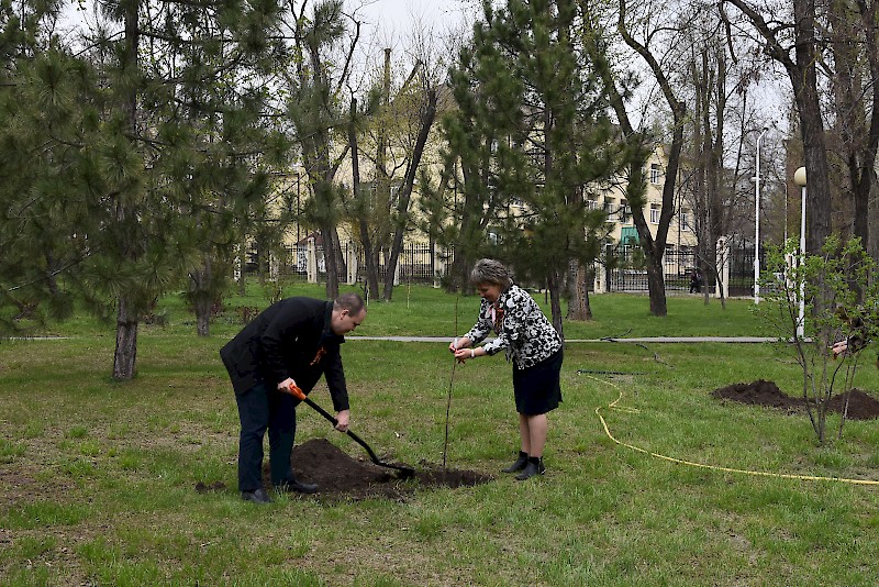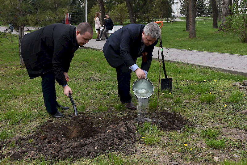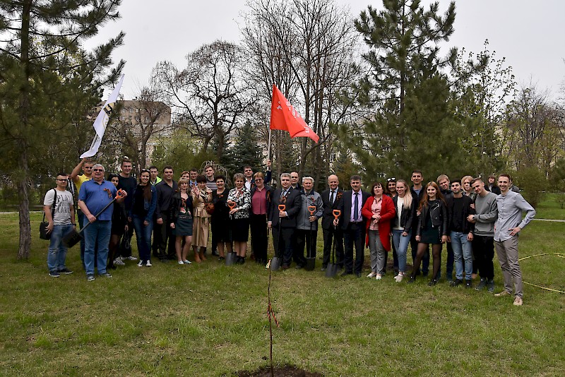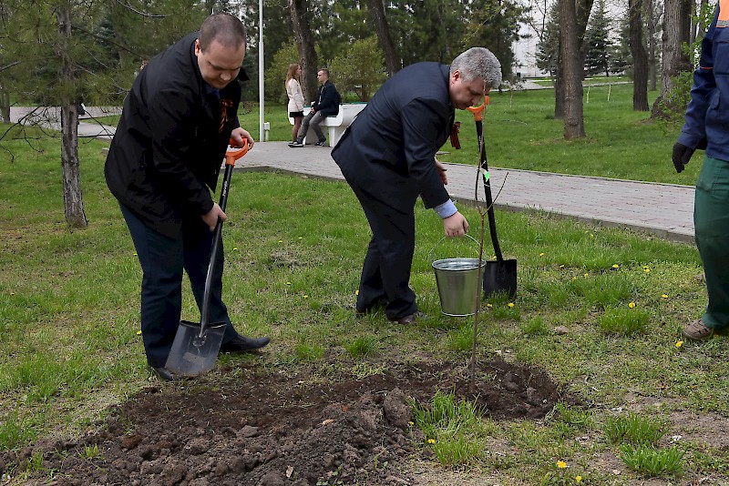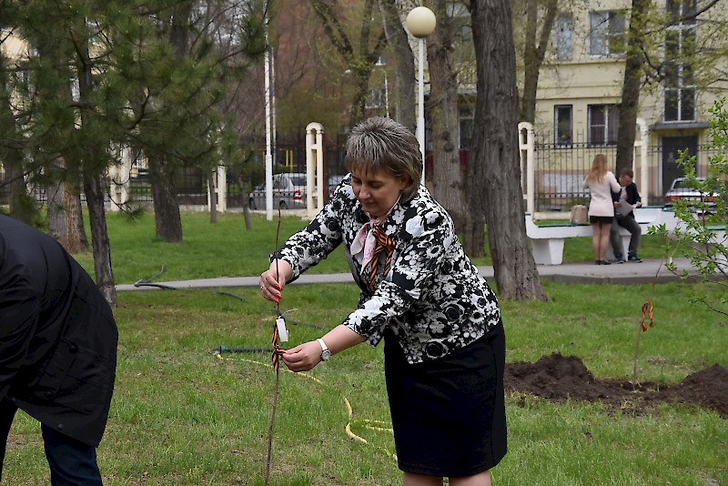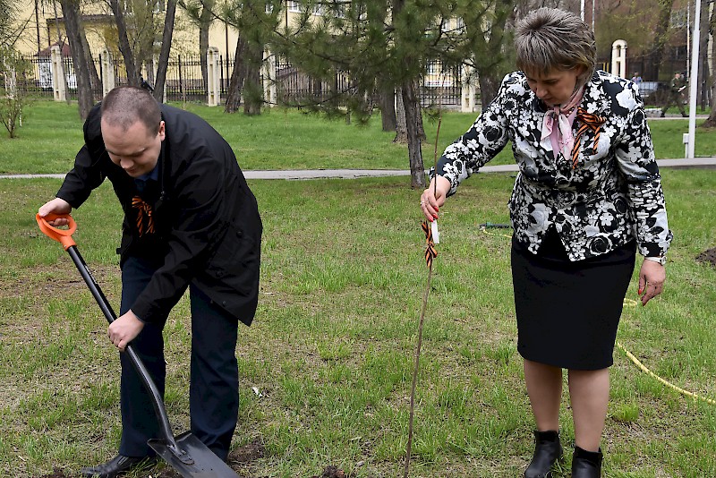Посадить дерево – это прекрасная возможность оставить свой след на земле. Весенний, солнечный день подарил заряд бодрости, положительные эмоции и удовольствие от совместного созидательного труда всем, кто не остался в стороне от этой замечательной акции. Были высажены саженцы клена «Явор». На каждом молодом деревце была завязана георгиевская ленточка, как связующее звено между нынешним поколением и героями Великой Отечественной войны. Пусть саженцы приживутся, вырастут и подарят радость и здоровье. Коллектив университета будет бережно относиться к природе и сделает парк еще красивее и зеленее.