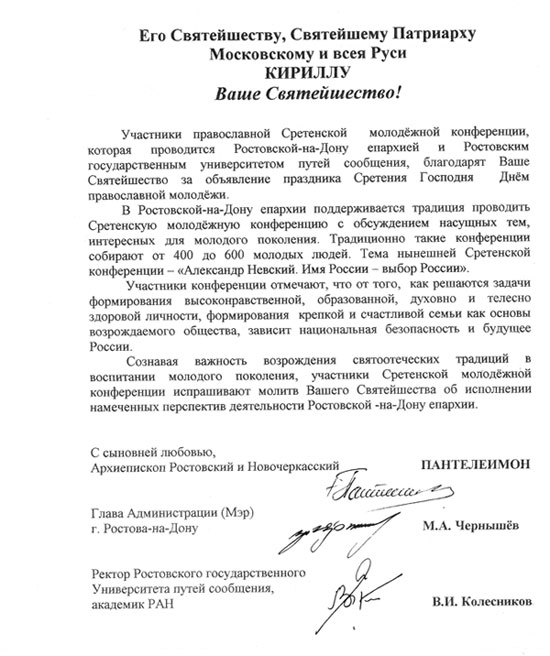 В Ростовском государственном университете путей сообщения прошла Четвертая Православная Сретенская молодежная конференция, тема которой «Святой князь Александр Невский – Имя России, выбор России».