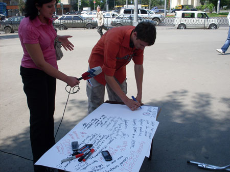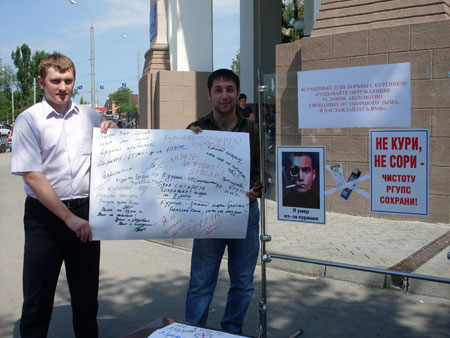 Мероприятие проходило перед главным корпусом университета. Каждый желающий мог высказать свое мнение о курении или написать свои мысли и пожелания. В результате получился интересный агитационный плакат, созданный силами студентов РГУПС. Неподдельный интерес вызвали информационный стенд и книжная выставка «Азбука здоровья».