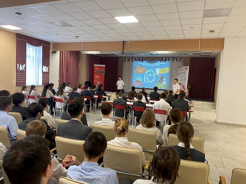 В период с 1 по 20 апреля в рамках Всероссийского классного часа амбассадоры Профессионалитета провели более 20 встреч со школьниками Ростовской области и Краснодарского Края, на которых рассказали о том, чем занимается команда студентов техникума «Амбассадоры Профессионалитета», об основном партнере проекта – компании «Российские железные дороги», о перспективах профессионального роста выпускников техникума, представили карьерные карты железнодорожников. Также студенты познакомили школьников с современными тенденциями развития среднего профессионального образования в Российской Федерации, раскрыли перспективы обучения в техникуме РГУПС. В проведении Всероссийского классного часа приняли участие более 800 школьников 8-9-х классов.