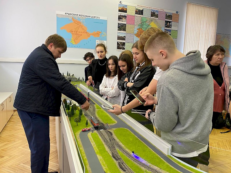 На строительном факультете университета они попробовали себя в качестве сигналистов, дефектоскопистов и монтеров пути. На факультете «Управление процессами перевозок» подростки познакомились с работой дежурного по станции, узнали принцип его взаимной работы с машинистами локомотивов и другими работниками станции. Наглядно увидели, как дежурный по станции управляет движением поездов и маневровой работой на станции. На электромеханическом факультете школьники на современных тренажерных комплексах электровозов, тепловозов и электропоездов «Ласточка» и «Сапсан» смогли в качестве машинистов и помощников машинистов провести локомотив по конкретному участку пути, познакомиться с действиями локомотивной бригады в нештатных и аварийных ситуациях в обстановке, максимально приближенной к реальным условиям. Завершающим этапом экскурсии по университету стал Учебно-производственный комплекс профессиональной подготовки, где школьники познакомились с новейшим учебно-производственным оборудованием, современным станочным парком, необходимым при прохождении студентами техникума учебной практики по специальностям, реализуемым в рамках федерального проекта «Профессиоанилет».