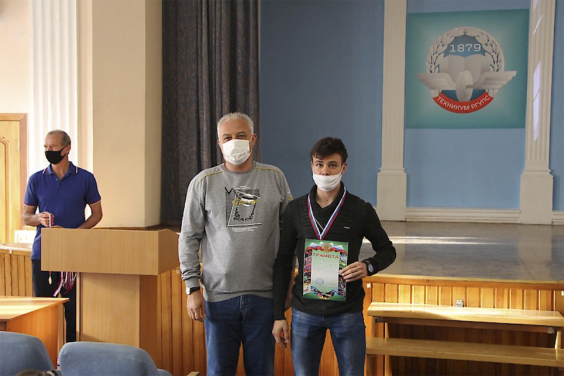 Директор техникума А. В. Мазуренко, руководитель ССК «61 регион» Ш. Ш. Хамидуллин и преподаватель техникума Буряков В. А. вручили медали, грамоты и переходящий Кубок победителя Чемпионата команде «Аталанта» (специальность «Техническая эксплуатация подвижного состава»), серебряным призерам - команде «Строишники» (специальность «Строительство железных дорог, путь и путевое хозяйство»), а также бронзовым призерам – команде «Дадо» (специальность «Организация перевозок и управление на транспорте»).