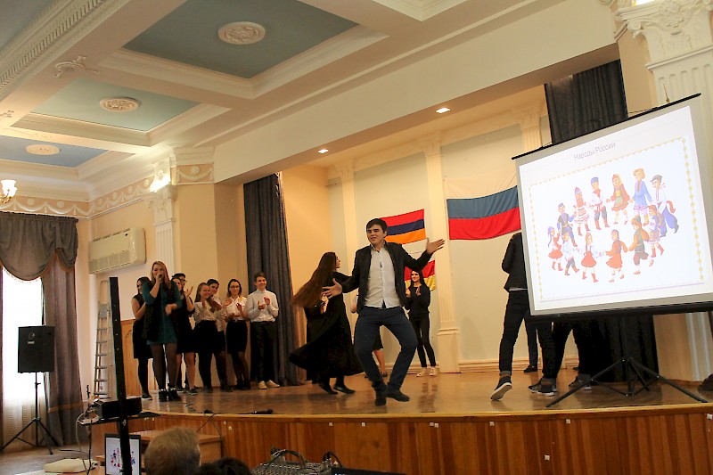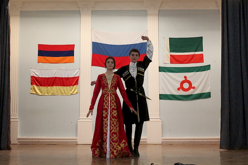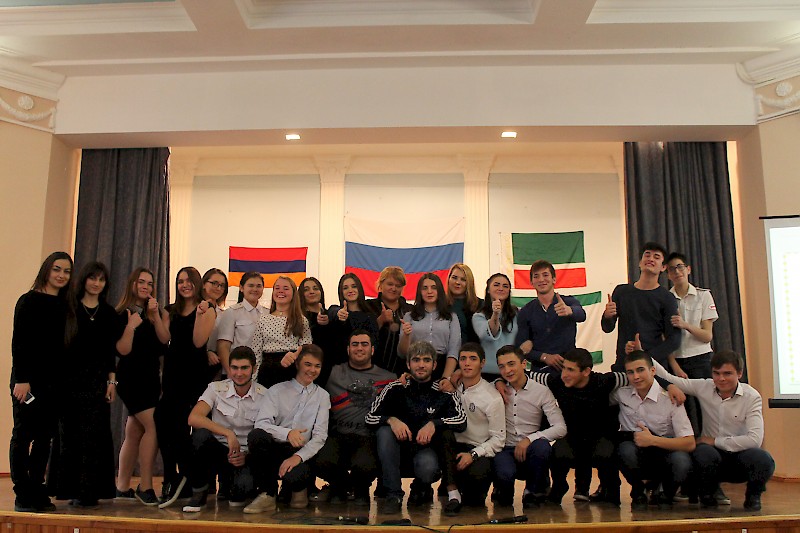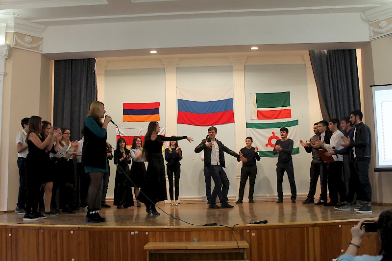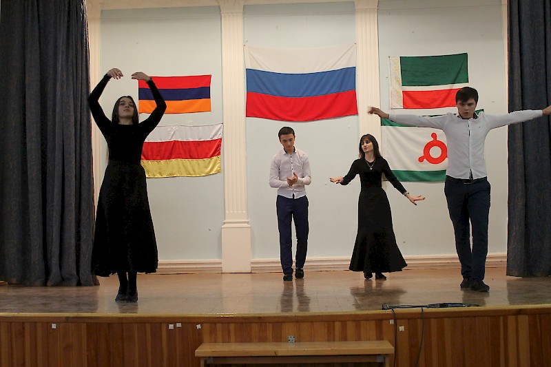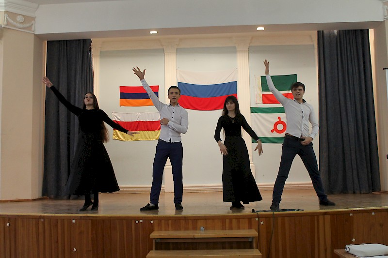Цель встречи: формирование у обучающихся техникума позитивных ценностей и установок на уважение, принятие и понимание богатого многообразия культур народов, их традиций и этнических ценностей посредством воспитания культуры толерантности и межнационального согласия. В ходе мероприятия студенты разных национальностей: русские, кабардино-балкарцы, ингуши, дагестанцы, чеченцы, армяне и осетины познакомили присутствующих с историей, культурой, обычаями и традициями своих народов. В программе были исполнены народные песни и национальные танцы. Такие встречи способствуют сплочению многонационального коллектива техникума, исключают случаи проявления экстремизма в молодежной среде.
