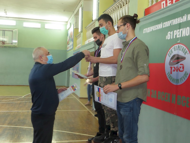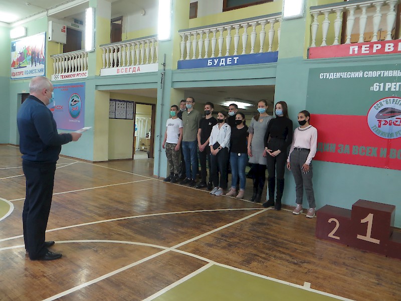 19 февраля состоялось награждение победителей и призеров Чемпионата ССК «61 регион» по пулевой стрельбе. В теплой дружественной (но с соблюдением всех санитарных норм) обстановке заместитель директора техникума по воспитательной работе С.А. Родионов, а также главный судья соревнований Е.Д. Алехин и преподаватель-организатор ОБЖ С.А. Тягленко вручили победителям и призерам соревнований грамоты, медали и атрибутику студенческого спортивного клуба техникума РГУПС «61 регион».