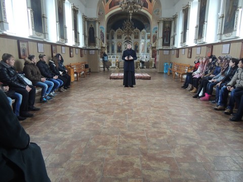 Отец Антоний в храме со студентами