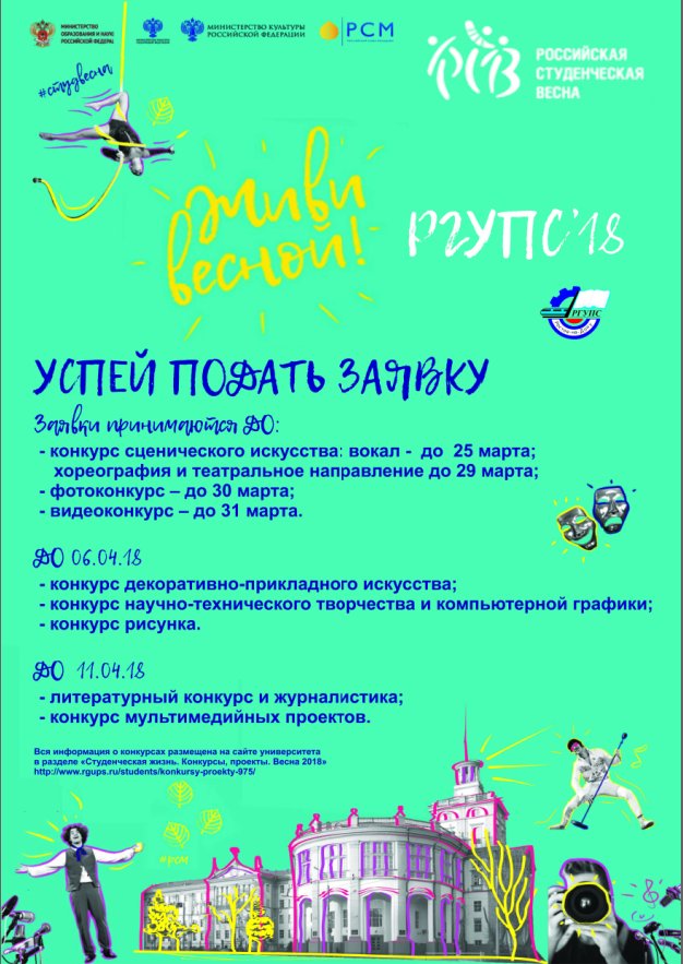Межфакультетский фестиваль-конкурс «Студенческая весна-2018» начался в университете! Не упусти шанс подать заявку на участие. Проводятся восемь конкурсов, знакомься с положениями, подавай заявки!!!
