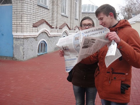 Студенты читают газеты, выпускаемые приходом храма святителя Николая Чудотворца