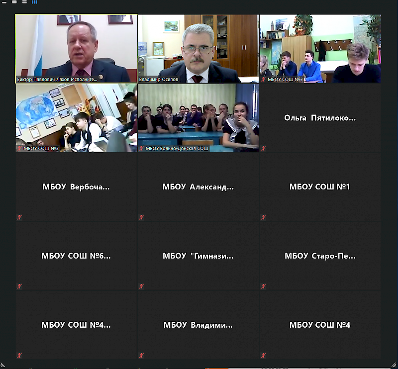 28 января и 4 февраля 2021 года в соответствии с планом профориентационной работы факультета состоялись видеоконференции с учащимися и преподавателями школ Азовского и Морозовского районов. В работе видеоконференций приняли участие начальник Управления образования Администрации Азовского района Малиночка И.Н., начальник Управления образования Администрации Морозовского района Гвозденко М.В., декан Гуманитарного факультета РГУПС, кандидат технических наук, доцент Осипов В.А., исполнительный директор ассоциации «Совет муниципальных образований Ростовской области», член Общественной палаты Ростовской области, доктор политических наук, профессор кафедры «Государственное и муниципальное управление» В.П. Ляхов, заведующий кафедрой «Государственное и муниципальное управление РГУПС, кандидат политических наук, доцент Денисенко И.Ф.