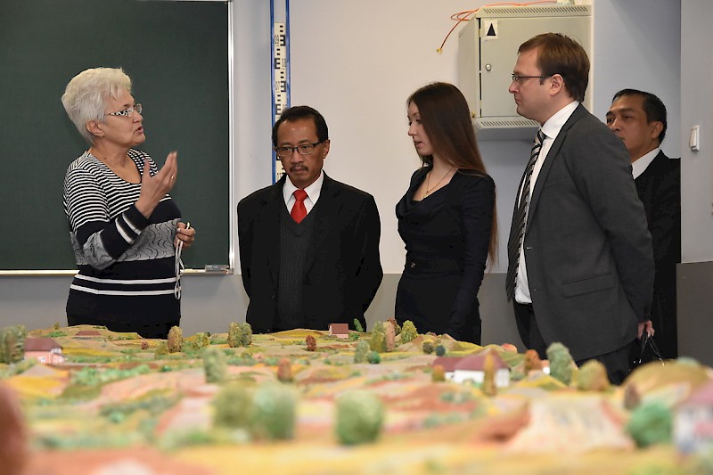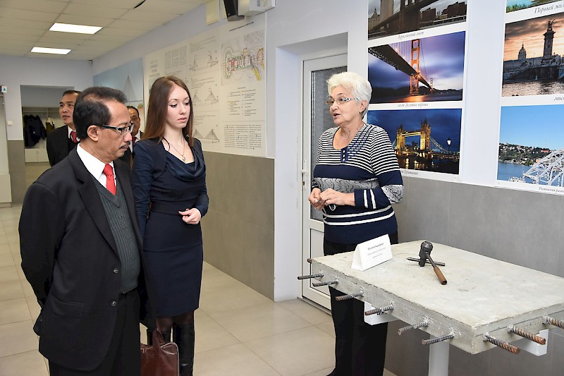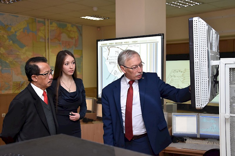 На сегодняшний день в нашем университете обучаются индонезийские студенты в рамках проекта Kalimantan Rail на факультетах Электромеханический, УПП, ИТУ, Строительный, выбор которых обусловлен созданием «с нуля» железнодорожной инфраструктуры провинции Восточный Калимантан. Особенности зыбкой, неустойчивой почвы на островах Индонезии из-за сезонности влажного и сухого периода, подверженности воздействия вулканической и океанической активности, требуют применения современных подходов к укреплению почвы. Вниманию делегации были представлены разработки учёных строительного факультета под руководством д.т.н., профессора В.А. Явна, посвящённые именно этой тематике. Разработки, актуальные для почв Сочинского побережья и нашедшие там своё применение, крайне заинтересовали господина М. Вахида Суприяди, выразившего надежду на то, что из индонезийских выпускников РГУПС вырастут основатели научных школ, направлений, результаты работы которых будут известны далеко за пределами Республики Индонезия.