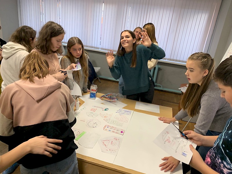 Учащиеся лицея РГУПС Мальцева Анастасия, Никулин Матвей, Мельникова Екатерина, Петрашенко Дмитрий, Артюхова Елизавета и студенты энергетического факультета Арепьев Денис, Королева Софья через игровую форму поделились своим опытом и навыками волонтерской деятельности со школьниками из МБОУ «Школа № 8 имени Героя Советского Союза Рашутина Григория Дмитриевича», МБОУ «Школа №31», МБОУ «Школа №43», МБОУ «Школа №49», МАОУ «Школа №55», МБОУ "Школа № 78 имени Героя Советского Союза Неделина М.И.", МБОУ «Школа №79», МБОУ «Школа No 80 имени Героя Советского Союза РИХАРДА ЗОРГЕ», МБОУ «Школа № 86 имени героя Советского Союза Пескова Дмитрия Михайловича», МБОУ «Школа № 93 имени Героя Советского Союза Фоменко Н.М.», МБОУ «Школа №101», МБОУ «Школа №111», МБОУ «Школа №112», МБОУ «Гимназия №25», МБОУ "Гимназия № 34" имени Чумаченко Д.М., МБОУ «Лицеи №2», МАОУ «Лицей №27 имени А.В. Суоврова», МБОУ «Лицей экономический №71», ЧОУ средняя школа «Азъ Буки Веди», Центр доп. образования Октябрьского района, Центр детского творчества Ворошиловского района. На занятии ребята построили свой город мечты, определили проблемы и задачи, стоящие перед жителями нашего города и получили домашнее задание к всероссийскому Дню Добровольца (волонтера), который проводится 5 декабря.