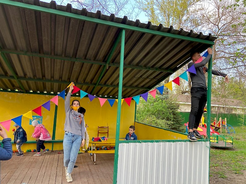 В связи с ограниченными возможностями проведения мероприятий участники волонтерского движения РГУПС нашли другой способ порадовать детей. Волонтеры организовали команду добровольцев по созданию красочных украшений для прогулочных веранд на территории Центра помощи.