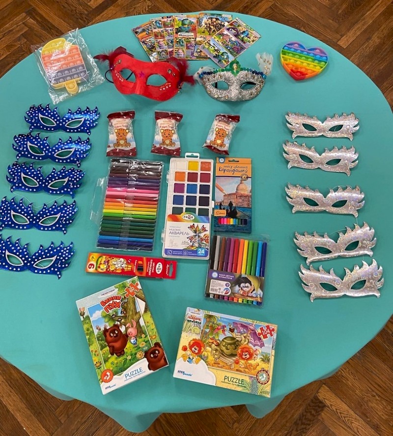 Совместной командой студенты и сотрудники РГУПС, школьники и учителя МАОУ СОШ №10 г. Таганрог собрали новогодний сундучок с красками, фломастерами, наборами для поделок, носками, варежками, карнавальными масками и поделками своими руками. Все собранные сюрпризы вошли в подарки, которые покупали неравнодушные жители г. Ростова-на-Дону выбирая их из списка с пожеланиями подопечных благотворительного фонда «Дарина».