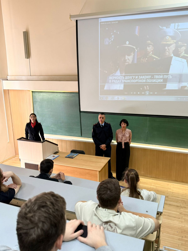 Представители Управления на транспорте Министерства внутренних дел по Северо-Кавказскому федеральному округу посетили РГУПС, встретившись со студентами факультета «Информационные технологии управления». Начальник вычислительного центра Соколов Н.В., заместитель начальника информационного центра Лозовая Е.В. и инспектор кадров по воспитательной работе Турянина И.В. провели подробную презентацию, рассказав студентам обо всех аспектах профессиональной деятельности транспортной полиции, подчеркнув значимость своей работы в обеспечении правопорядка и общественной безопасности на объектах транспорта. Особое внимание было уделено вопросам профессионального роста, раскрытию возможностей трудоустройства в органах внутренних дел. Студентам была предоставлена уникальная возможность задать интересующие вопросы представителям правоохранительных органов и лично познакомиться с представителями структуры, ведущей борьбу с преступностью на транспорте. Кроме того, сотрудники отдела кадрового сопровождения пригласили обучающихся пройти производственную практику непосредственно в подразделениях транспортного МВД, подчеркивая важность прикладного опыта для будущих выпускников. Эта встреча стала значимым событием для ребят, расширив их представление о профессии и открыв новые перспективы дальнейшего развития карьеры в сфере охраны правопорядка.