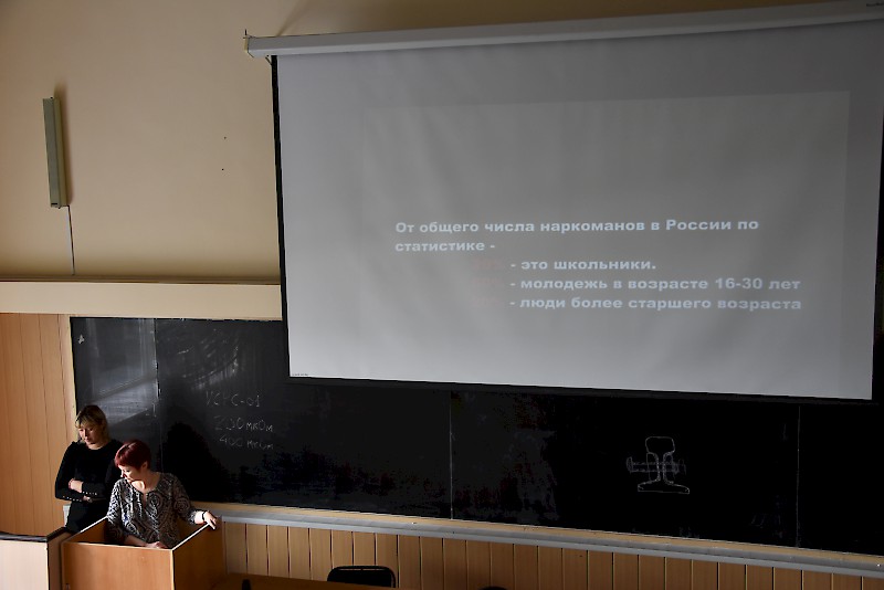 Встреча организована управлением воспитательной работы в ходе реализации плана мероприятий по профилактике асоциальных проявлений в молодёжной среде РГУПС. Внимание студентов было акцентировано на негативных последствиях приема наркотических средств и психотропных веществ, касающихся как индивидуальных, так и социальных аспектов, а также на основных причинах, по которым молодые люди становятся наркозависимыми лицами.
