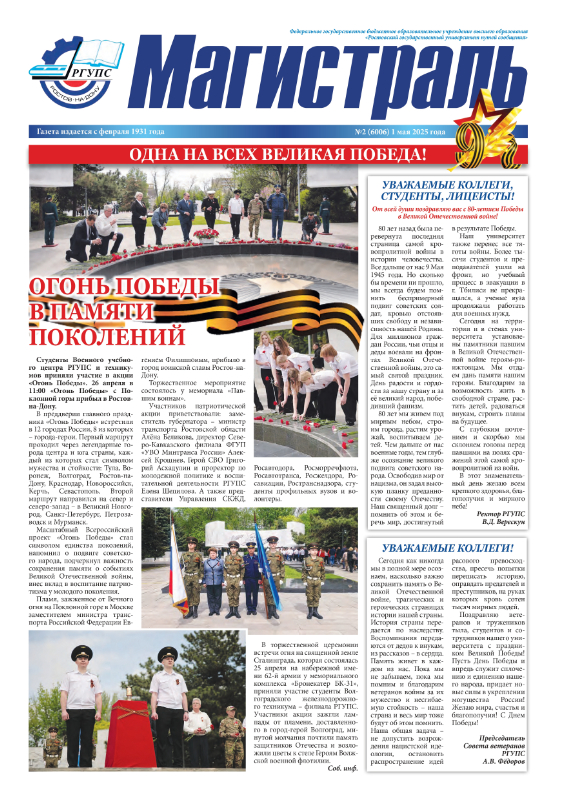 2. Выпуск газеты "Магистраль" 1 мая 2025 г.