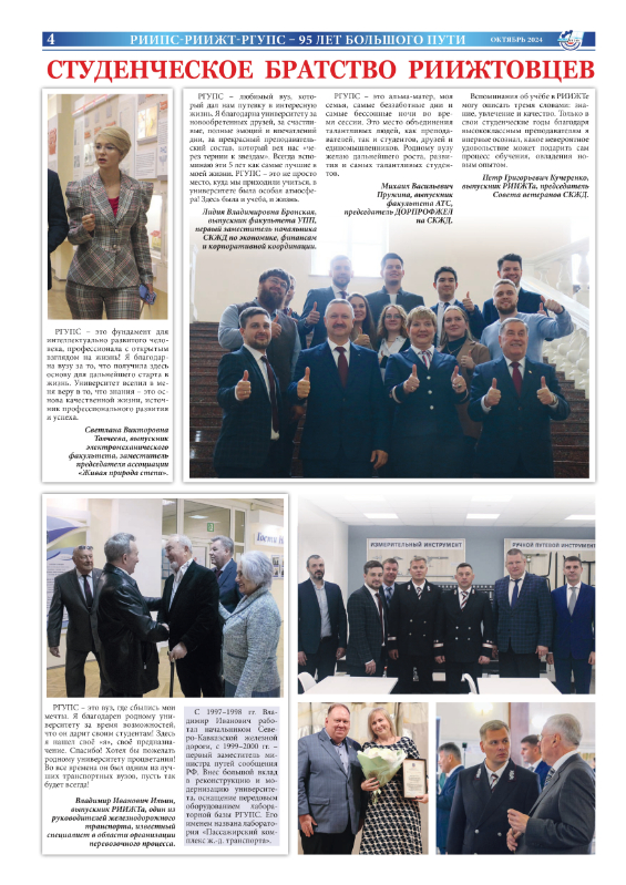 Выпускники, окончившие РИИПС-РИИЖТ-РГУПС с отличием