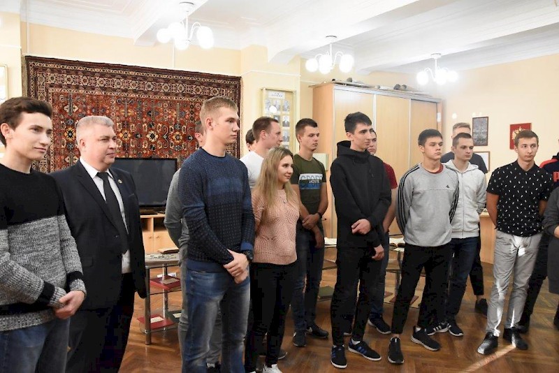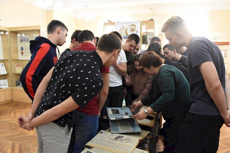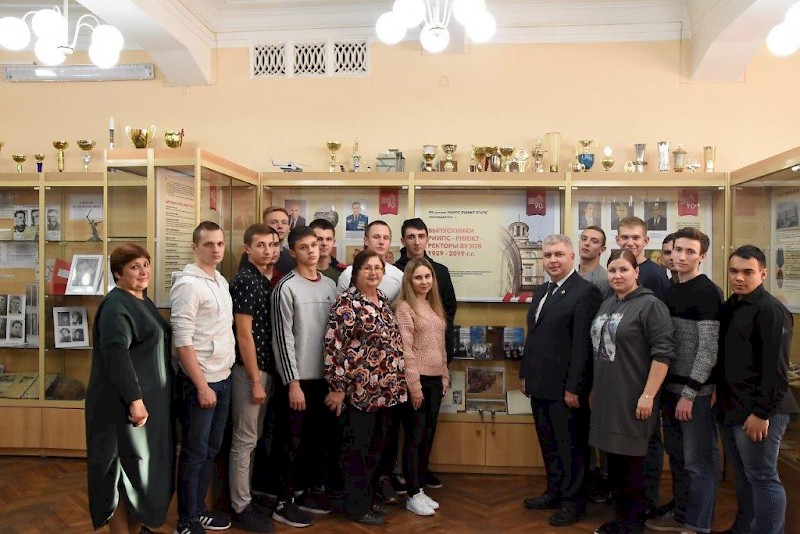 Первыми ознакомились с выставкой студенты электромеханического факультета, десять выпускников которого возглавили вузы. Студентам рассказали о выдающихся выпускниках университета проректор по воспитательной работе и социальному развитию Шепилова Е.Г., начальник управления воспитательной работы Субботина Г.П., декан электромеханического факультета Яицков И.А. Большой интерес у участников встречи вызвали старые альбомы об истории вуза и газеты прошлых лет.
