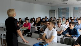 Подобные встречи со студентами нашего факультета стали традиционными. В начале учебного года наши коллеги, которые занимаются обеспечением общественного порядка и профилактикой правонарушений в подростковой и молодежной среде, приходят к первокурсникам, чтобы рассказать им о деятельности своих подразделений.