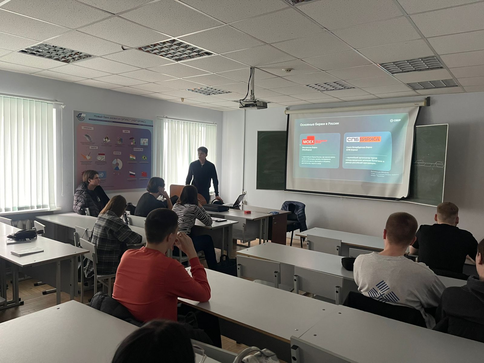 В рамках взаимодействия факультета «Экономика, управление и право» с ПАО «Сбербанк» по вопросам профессионального самоопределения и развития профессиональных компетенций 20 ноября 2025 года состоялись открытая лекции и мастер-классы на темы «Рынок ценных бумаг» и «Предпринимательские стартапы».