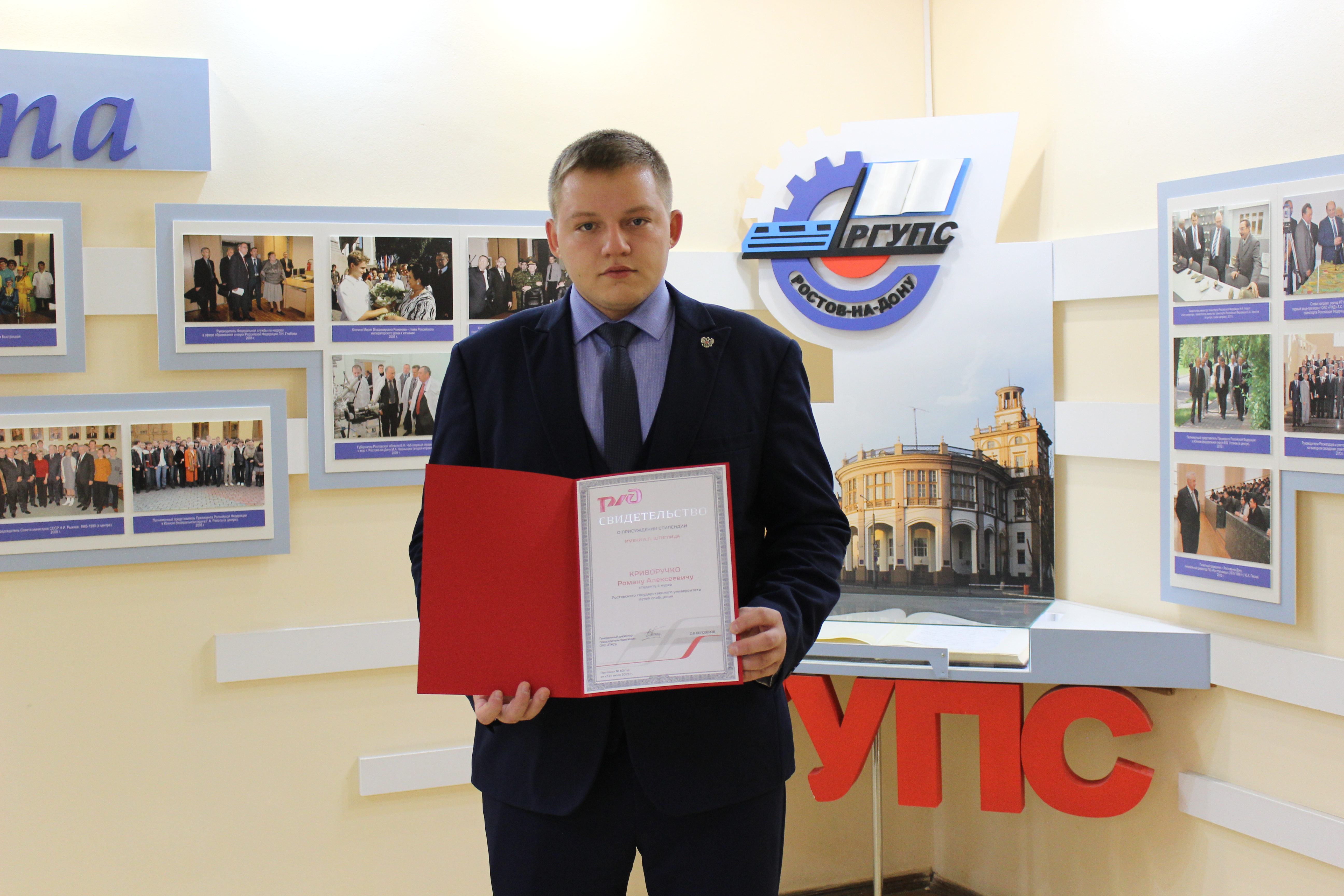 В 2025-2026 году стипендии имени А.Л. Штиглица удостоен студент факультета ЭУП Роман Криворучко, обучающийся на 4 курсе по направлению подготовки бакалавров «юриспруденция».