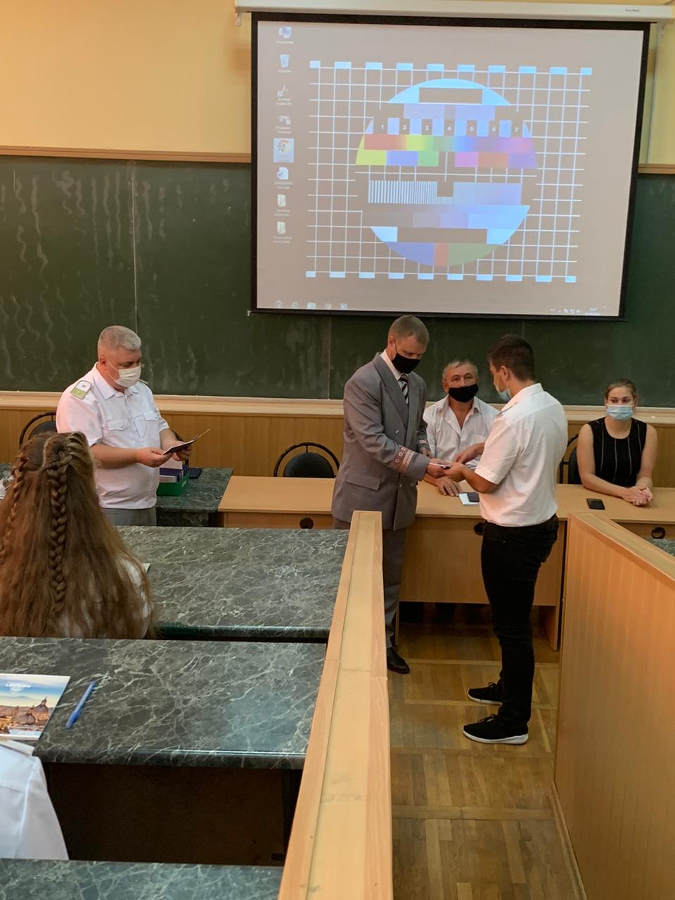 Студенческие билеты и зачётные книжки студентам специализации «Пассажирские вагоны» и «Грузовые вагоны» торжественно вручали декан факультета Иван Анатольевич Яицков и гости Электромеханического факультета заместитель начальника Дирекции инфраструктуры ОАО «РЖД» по кадрам и социальным вопросам Поляев А.Г. и заместитель начальника Северо-Кавказского филиала АО «Федеральная пассажирская компания» по кадрам и социальным вопросам Гарбузов В.В.