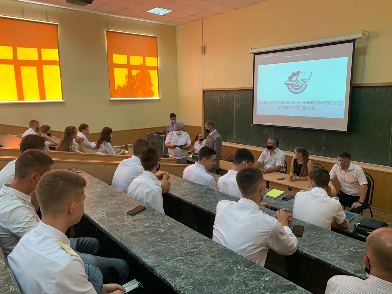 С видео поздравлениями к первокурсникам, и преподавателям обратились: ректор университета В.Д. Верескун, Министр транспорта Российской Федерации Е.И. Дитрих, заместитель министра транспорта Российской Федерации – руководитель Федерального агентства железнодорожного транспорта В.А. Токарев, генеральный директор ОАО «РЖД» О.В. Белозеров, начальник Северо-Кавказской железной дороги- филиала ОАО «РЖД» В.Г. Пястолов, начальник Приволжской железной дороги – филиала ОАО «РЖД» С.А. Альмеев, руководитель Южного территориального управления Федерального агентства железнодорожного транспорта В.Н. Королев и президент РГУПС В.И. Колесников.