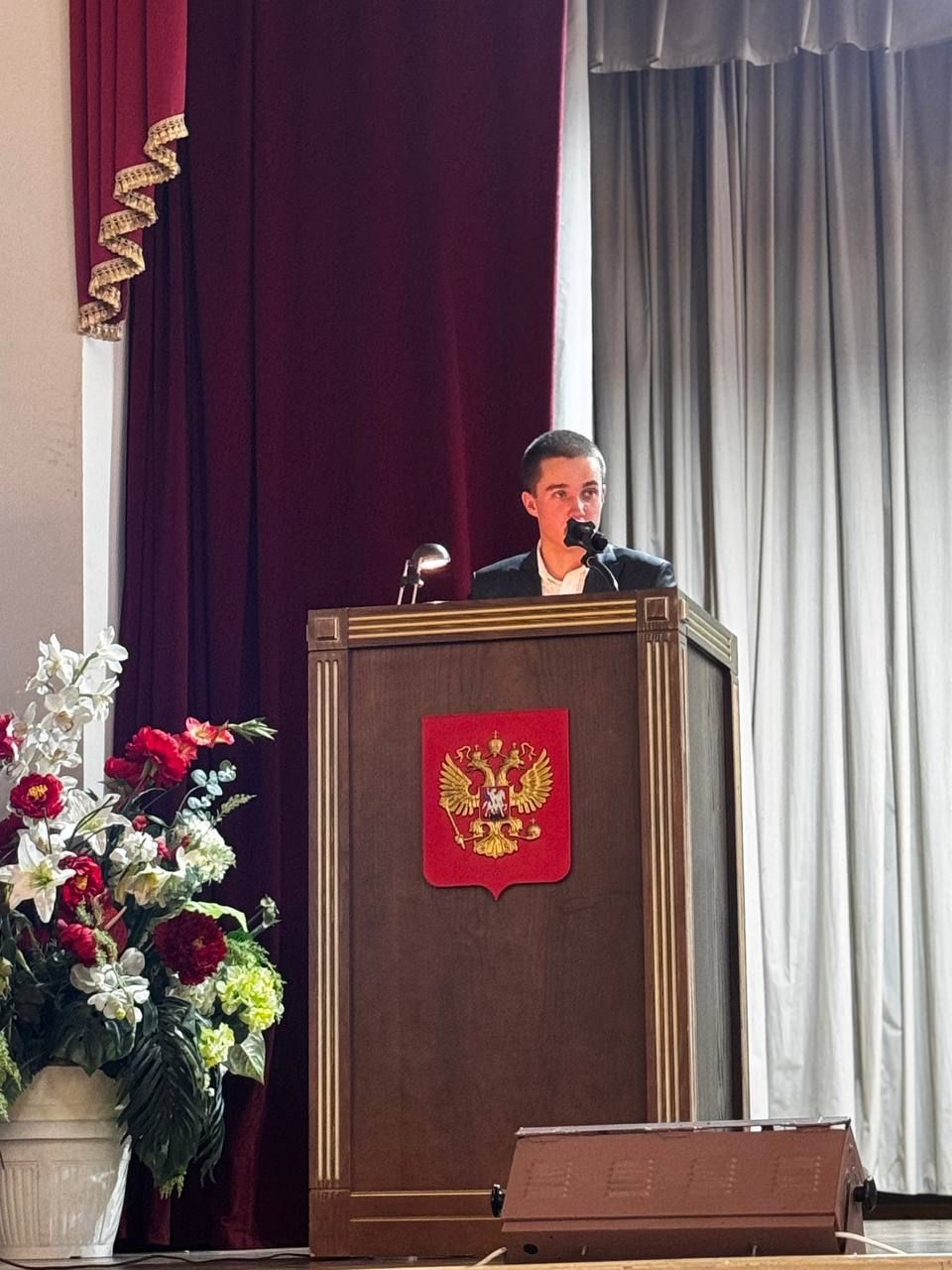 Езус Никита выступил с докладом на тему: «О важности правового воспитания молодежи в современном российском обществе» (науч.рук. Миллерова Е.А.), а также ответил на вопросы участников конференции.