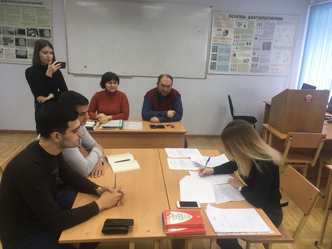 Во время занятия студенты получили возможность продемонстрировать теоретические знания и практические навыки проведения таких следственных действий как допрос подозреваемого и проверка показаний на месте. При этом будущие специалисты примерили на роли следователя, подозреваемого, защитника и других участников процесса.