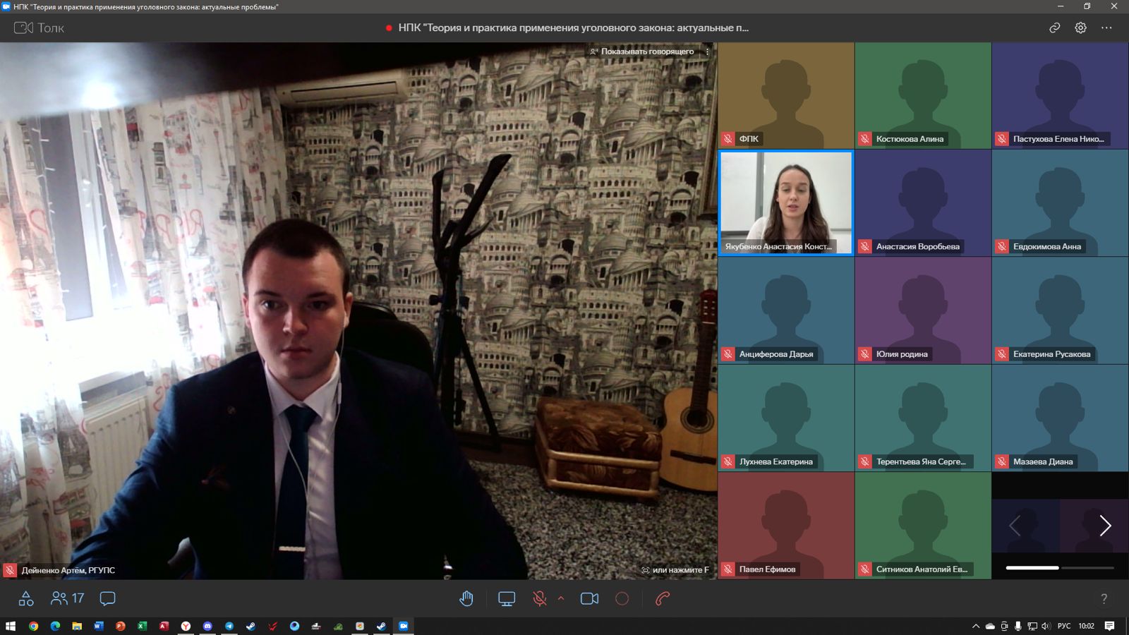 26 апреля 2024 г. студент гр. ПУБ-2-30 Дейненко Артем в онлайн формате принял участие во Всероссийской научно-практической конференции для студентов и магистрантов «Теория и практика применения уголовного закона: актуальные проблемы», организованной кафедрой уголовного права Восточно-Сибирского филиала «Российский государственный университет правосудия» (г. Иркутск), выступив с докладом на тему: «Вопросы освобождения от уголовной ответственности» (научный руководитель доцент кафедры «АУП», к.ю.н., доцент Е.А. Миллерова).
