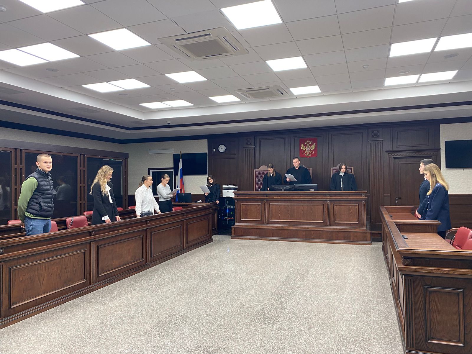 17 октября 2024 г. студенты 3 курса направления подготовки «Юриспруденция» в рамках изучения дисциплин уголовное право и уголовный процесс, под руководством доцента кафедры «Административное право и уголовно-правовые дисциплины» Миллеровой Е.А. приняли участие в игровом судебном процессе по рассмотрению уголовного дела террористической направленности. Примерив на себя роли участников уголовного судопроизводства в стенах Южного военного окружного суда, студенты попробовали применить на практике полученные знания.