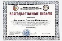 30 сентября 2021 года профессор кафедры «Административное право и уголовно-правовые дисциплины», профессор, д.ю.н. Денисенко Виктор Васильевич принял участие в международной научно-практической видеоконференции «Судебно-правовые реформы: национальный и зарубежный опыт», которая состоялась на базе Университета общественной безопасности Республики Узбекистан.