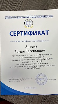 14 мая 2021 г. доцент кафедры «Административное право и уголовно–правовые дисциплины» ФГБОУ ВПО РГУПС, к.ю.н. Р.Е. Затона принял участие в ежегодной региональной научно-практической конференции «Актуальные вопросы совершенствования уголовной политики Российской Федерации», проводимой кафедрой «Уголовное право и криминалистика» факультета «Юридический» ФГБОУ ВПО ДГТУ.
